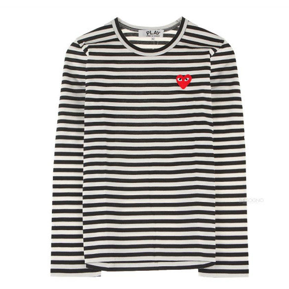 [꼼데가르송] AZ-T163-051-1 검흰 스트라이프 레드와펜 블랙 여성 긴팔티셔츠 > 잡화