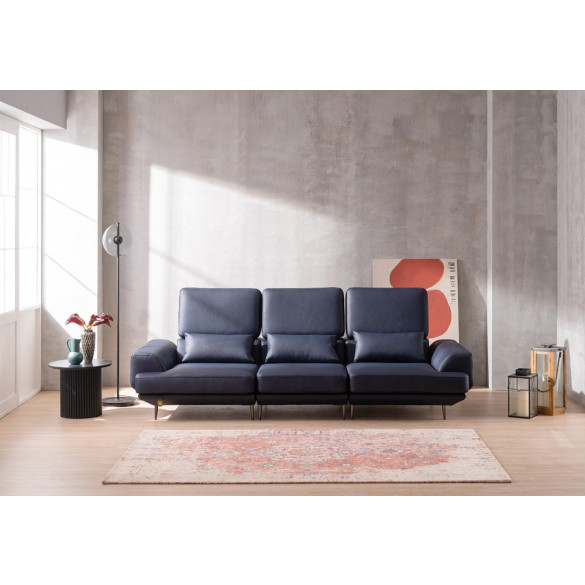 다우닝 주드 3인 리프트업 전체 천연가죽 소파+스툴 (색상:네이비) > 생활가구